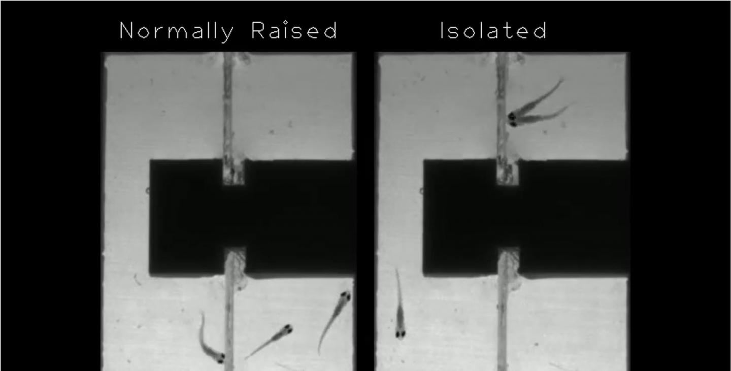 image: Zebrafish raised in isolation display different social preferences from those raised normally.