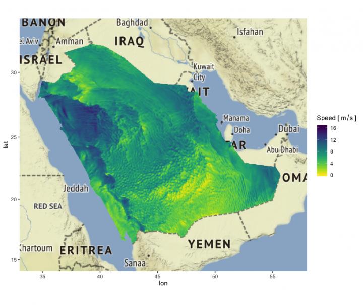 "Using this approach, we are able to compute a full forecast distribution from just a few monitoring locations and construct maps of wind speed for all of Saudi Arabia at high spatial resolution for up to several hours ahead with minimal computational time," says Lenzi. "The model also provides an accurate measure of the uncertainty in these predictions, which is necessary for planning wind farms that operate at maximum efficiency."