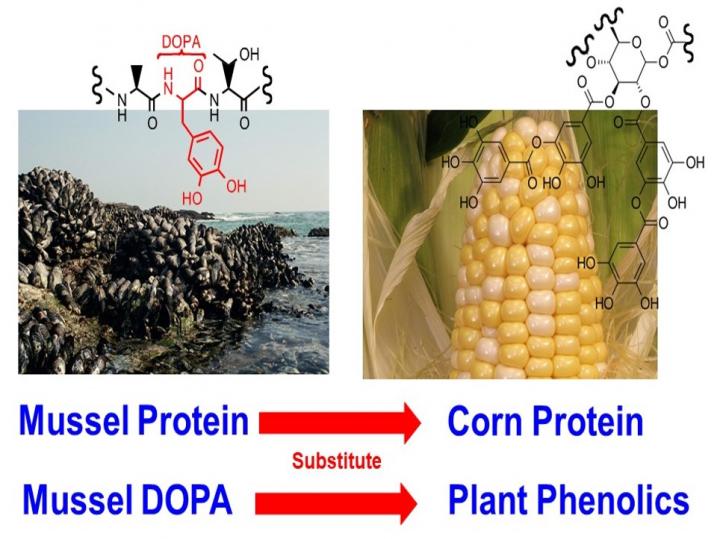 "We have created high-performance, tunable adhesives that are nontoxic and degradable," Schmidt said. "We found that some combinations of zein protein and tannic acid could be reacted together in order to generate high-performance adhesives that could be alternatives to carcinogenic formaldehyde used in the glues that hold lots of furniture and other household items together. It would be a big health benefit if we could switch over to bio-based or even food-based adhesives."