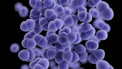 Methicillin-resistant Staphylococcus aureus (MRSA) bacteria dividing. Under nutrient-rich conditions bacteria go into hyper-drive, dividing as often as once every 20 minutes. The discovery of fail-safe points in their cell cycles may provide a way to shut down rampant proliferation.